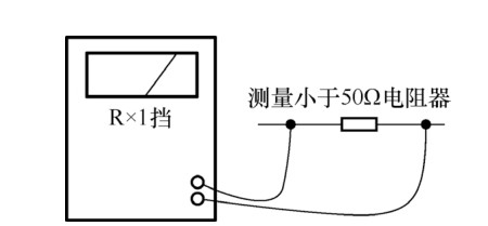 (5)測量小于50的電阻器。圖5-23是測量小于50的電阻器的接線示意圖。當萬用表放置在電阻 r1中,兩根桿連接到電阻器的兩個引腳中的任何一個時,表針應(yīng)偏轉(zhuǎn)到右邊,指向電阻器的標稱電阻值,如10電阻器,表針應(yīng)停在刻度盤上的10點處。