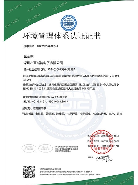 環境管理體系認證證書